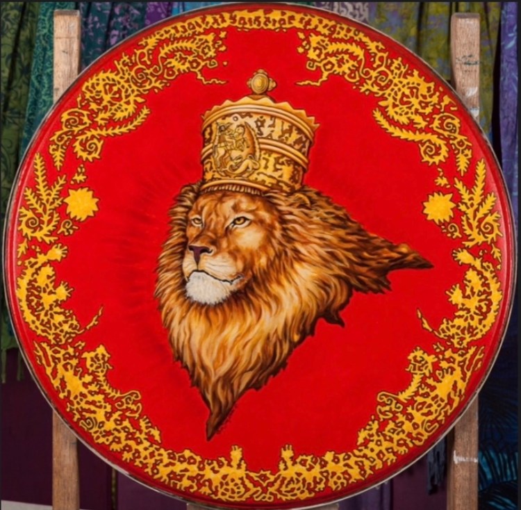 Crowned is the Lion acrylic on drum head 38”